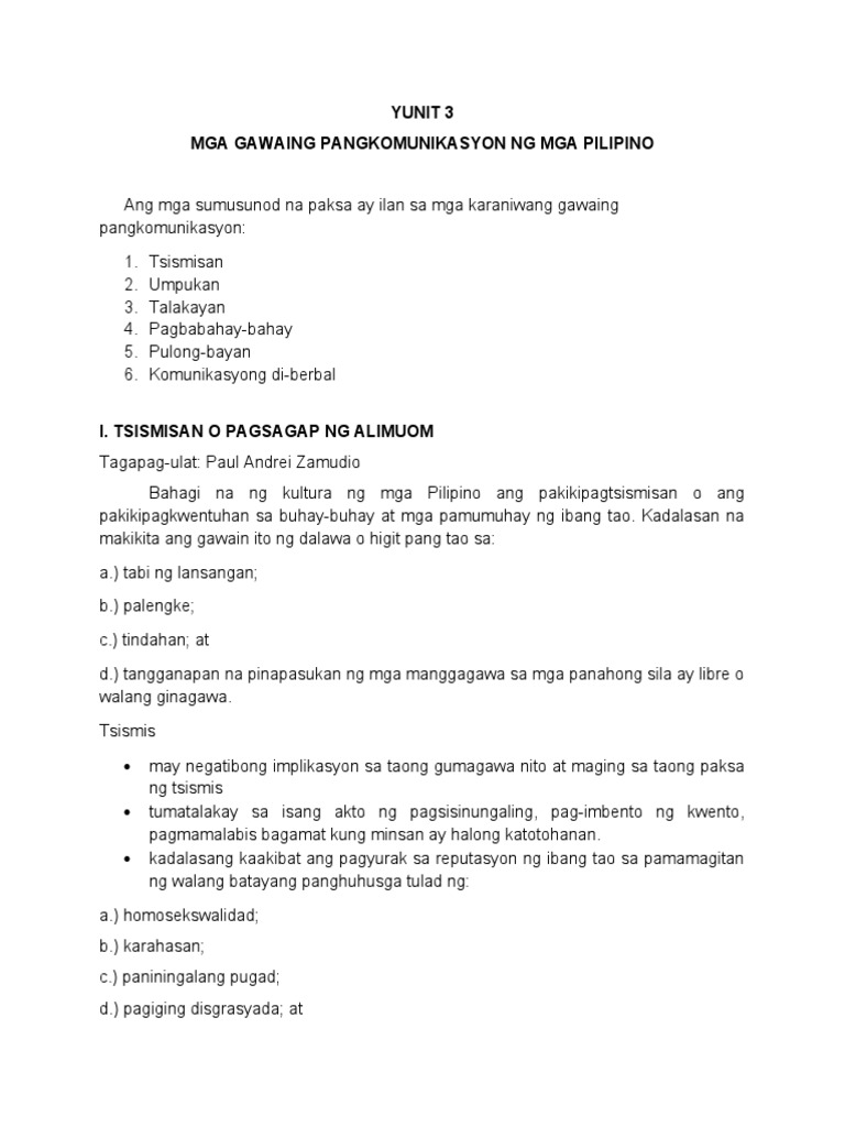 Pagpapagawa ng mga imprastraktura upang malutas ang suliranin sa trapiko at pagsisikip. Sa pagtahimik o di pag- imik inihahanda ng tagatanggap ang mahalagang mensahe na sasabihin pa ng tagapagsalita. Ano-ano ang karaniwang pinag-uusapan sa umpukan ng mga tao.