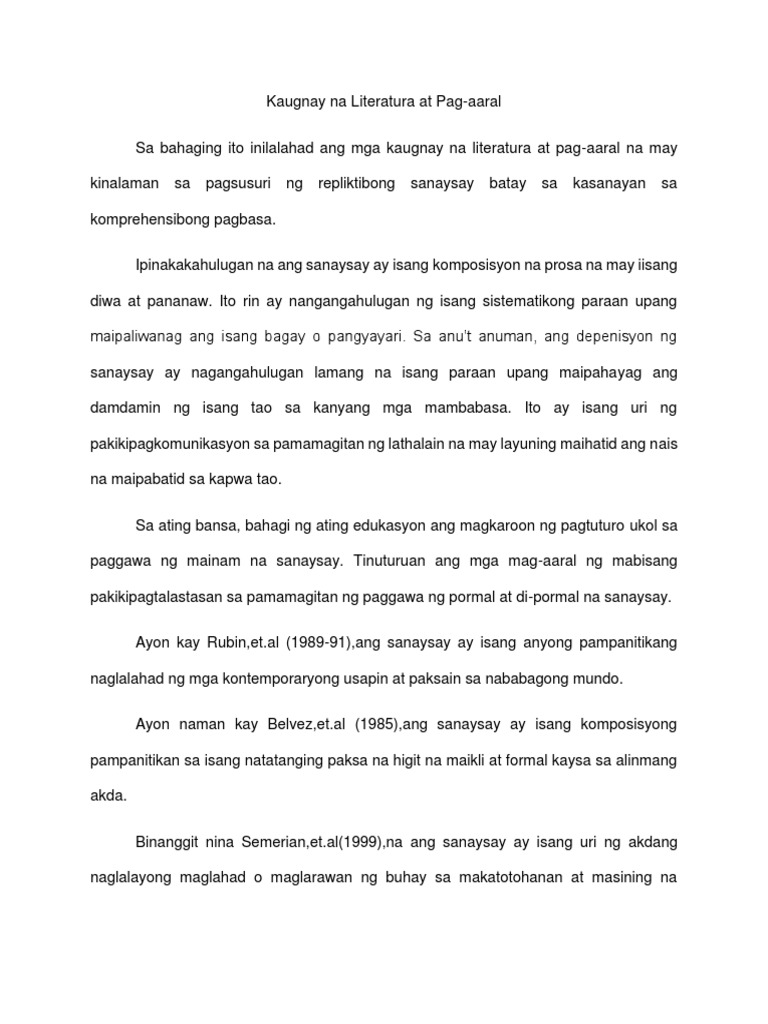 Kaugnay Na Literatura At Pag Aaral Pdf